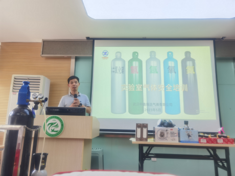 首先,学院安全员何丹老师介绍了本次培训的嘉宾:武汉中鑫瑞远气体有限公司销售总监彭李强。本次培训将围绕近期我院气体安全专项检查存在的安全隐患和整改建议,结合2023年版《高等学校实验室安全检查项目表》里实验室气体规范使用和管理规定展开,向师生强调气体使用的规范性和重要性。