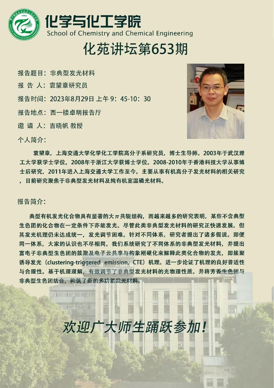 上海交通大学袁望章研究员做客第653期化苑讲坛