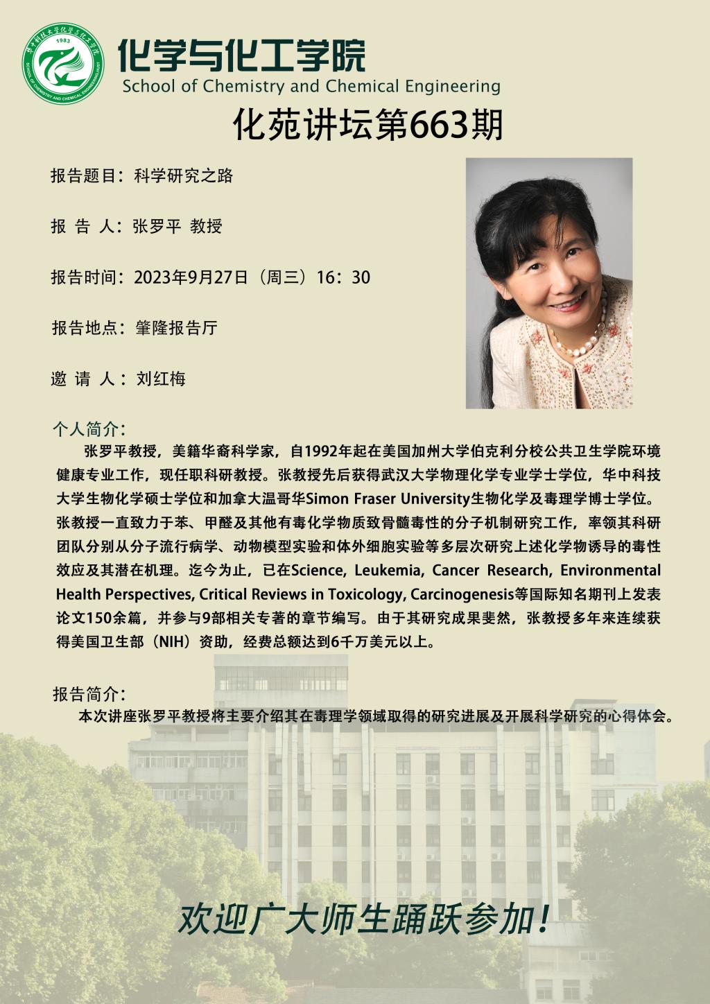 美国加州大学张罗平教授做客第663期化苑讲坛