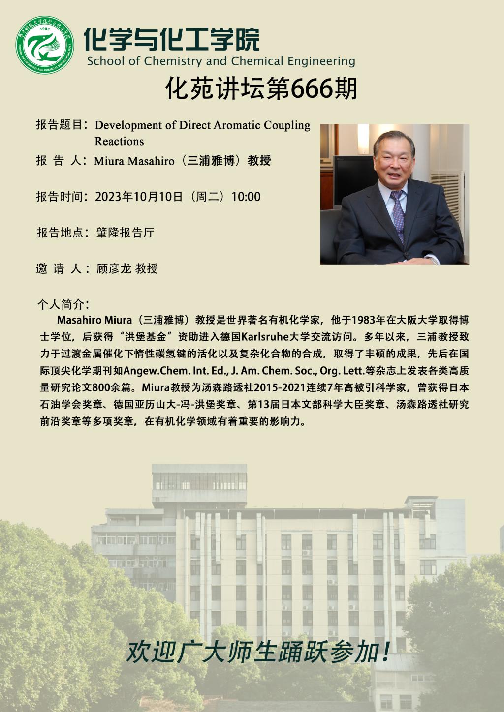 大阪大学Miura Masahiro(三浦雅博)教授做客第666期化苑讲坛