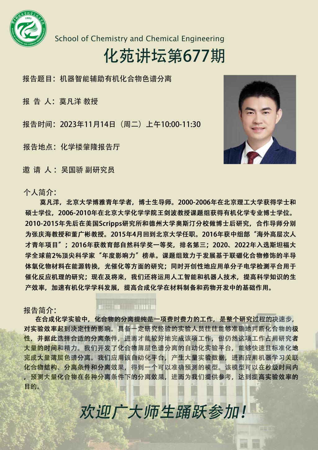 北京大学莫凡洋教授做客第677期化苑讲坛