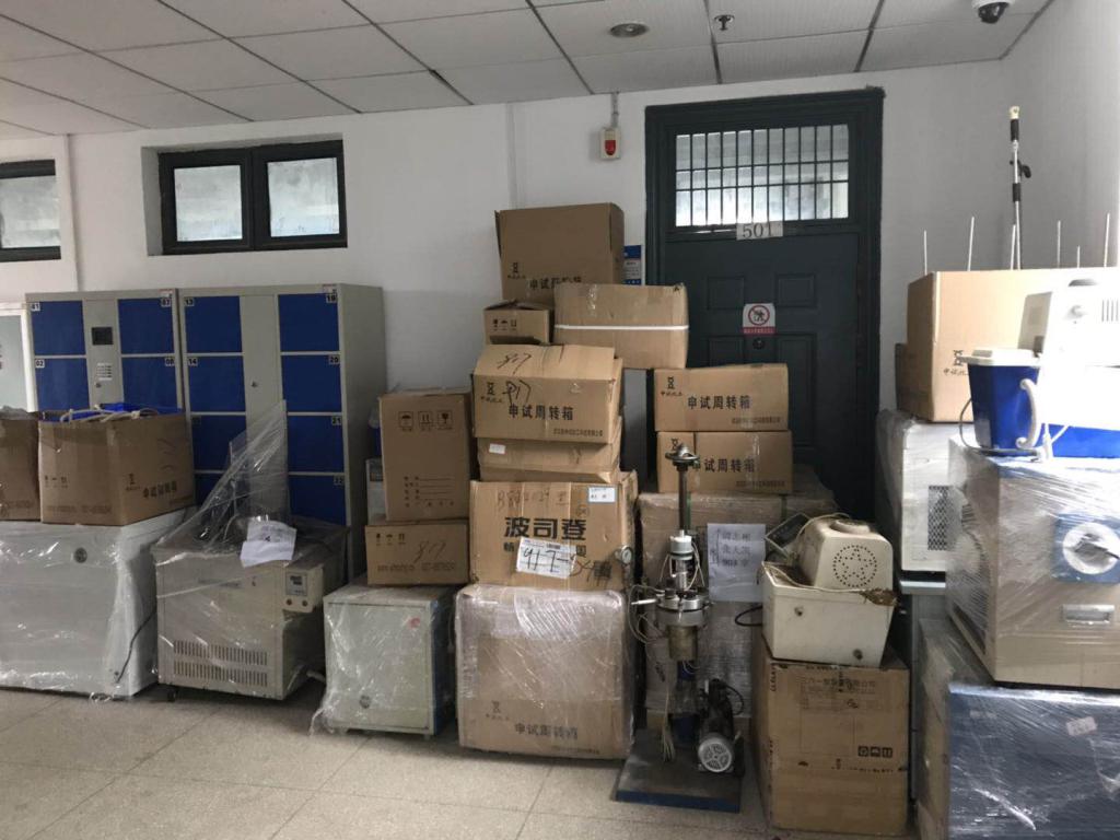 1、自6月28日至7月1日,搬家公司进场协助化学楼清理搬运物品。因部分实验室没有按照学院要求,提前对实验室物品进行清理,导致搬运进度延迟,原计划三天完成的搬运任务,还有剩余,直到第四天才完成。按照原有清理搬运计划,普通化学品搬入化学楼C栋一楼暂存,为防止梅雨季节使化学试剂受潮,C栋一楼堆放化学试剂的地面已加隔板、纸箱来做好防护措施;为防止夏天天气炎热加快试剂挥发,已对C栋一楼6个空调进行检修,现已全部正常开启。各实验室管制类试剂柜里的危险化学品,已搬入化学楼废弃物暂存柜存放,为防止与其他废弃物混淆,已张贴危险标识。实验室大部分气瓶已联系气体公司进行回收,少数气瓶转移到会议室或办公室存放。实验室小型设备、玻璃仪器等物品,按照原计划搬入办公室、会议室,剩余部分,搬至化学楼B栋走道指定区域暂存。实验室不易搬运的大型设备,已用塑料或防尘布做好防尘处理,放置在不影响施工的安全位置。各层大厅已接通临时供电,各实验室的冰箱已转移到大厅集中存放。